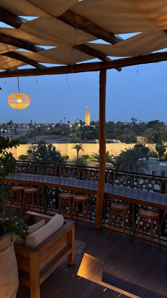 👉 C’est une adresse recommandée pour un verre au coucher du soleil, un dîner sur terrasse ou une soirée relaxante avec vue sur la médina 🌇.